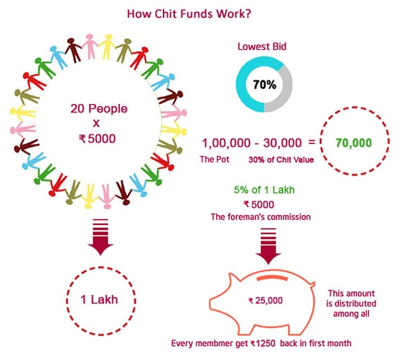 Once the monthly amount of ₹1,00,000 is collected, it is put up for auction among the subscribers. The subscriber who is willing to accept the lowest amount wins the auction and receives that amount as the prize money for the month.